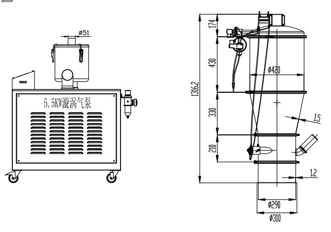 เครื่องป้อนสูญญากาศประกอบด้วยปั๊มสูญญากาศ (ปราศจากน้ำมันหรือไม่มีน้ำ), ถังสูญญากาศ, ตัวกรอง (เคลือบโพลีเอสเตอร์, PE, สแตนเลส 316L, ไททาเนียม), อุปกรณ์ป้องกันการเป่าลมอัด, อุปกรณ์ประตูป้อนลม, ระดับวัสดุอัตโนมัติ อุปกรณ์ควบคุมหัวดูดสแตนเลสท่อลำเลียงอุปกรณ์ทั้งหมดได้รับการออกแบบและผลิตมาเป็นอย่างดี