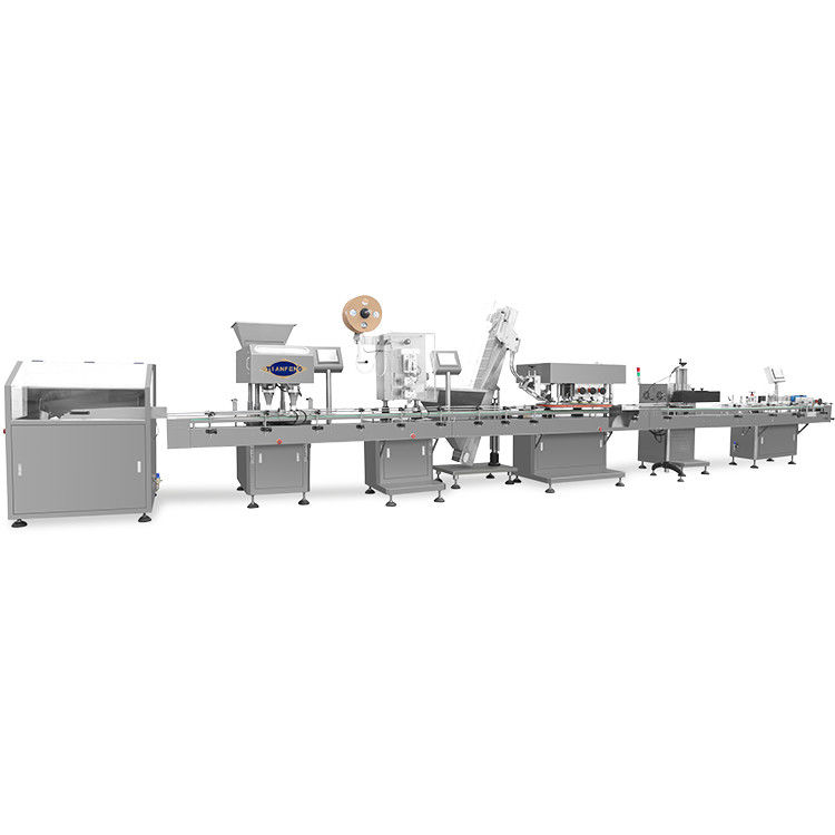 JF-A160-16 สายการผลิตบรรจุภัณฑ์สำหรับบรรจุขวดนับเม็ดประกอบด้วยเครื่องถอดรหัสขวด JF-A160, เครื่องนับอิเล็กทรอนิกส์ JF16, เครื่องดูดความชื้นอัตโนมัติ JF-C120 (ที่ใส่ผ้าฝ้ายหรือที่ใส่กระดาษ)JF-D902 เครื่องปิดฝาเกลียว, เครื่องซีลปากถุงแบบเหนี่ยวนำ JF-2, เครื่องปิดฝาขวดแบบกลม JF-201 (เครื่องเข้ารหัส)